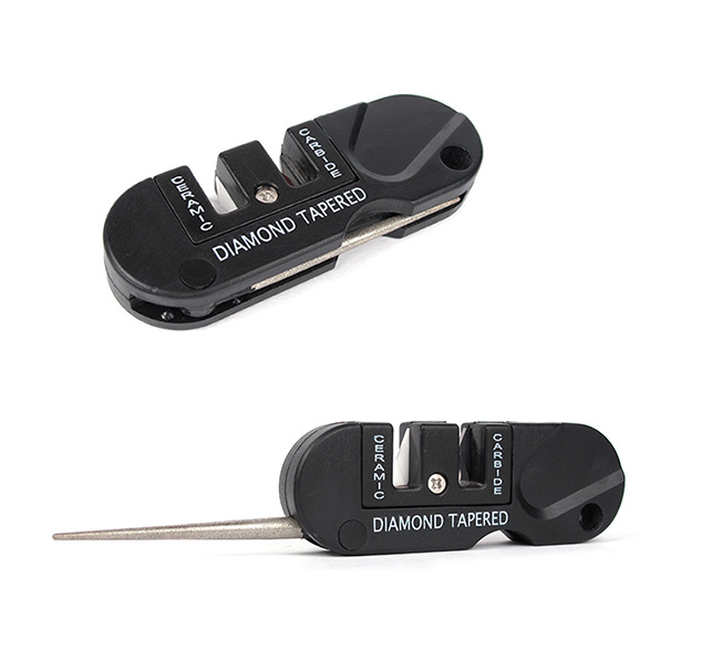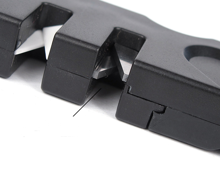 - Specialy shaped ceramic slot to finish edges and sharpen serrated blades.