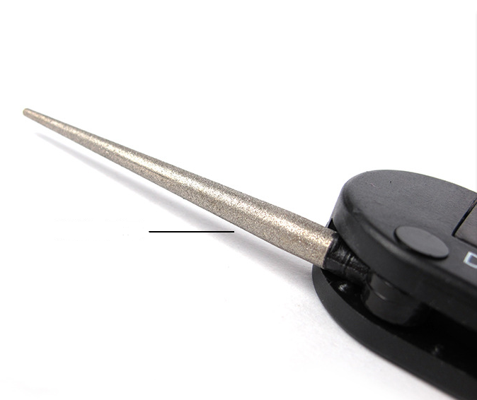 - Tapered diamond rod for sharpening serrated and standard edges.