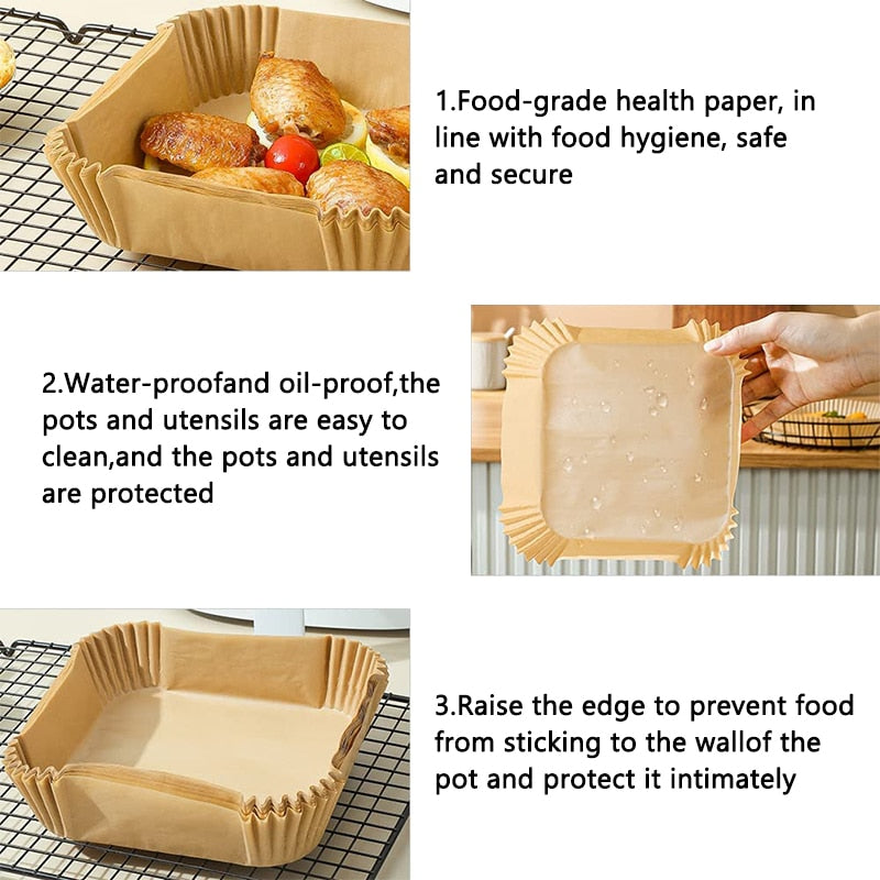 So why wait? Order now and take your baking game to the next level! These liners are a game-changer for any baking enthusiast. Don't miss out on this opportunity to make your baking experience more enjoyable and hassle-free. Get your 50 or 100 pieces of disposable air fryer parchment paper baking oil-proof liner non-stick mat food grade for baking round/square 16/20cm today!