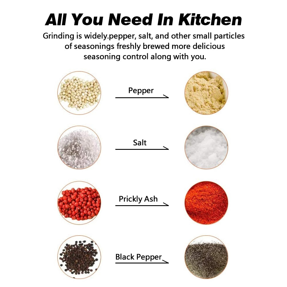 The automatic gravity induction feature of our Electric Battery Powered Salt And Pepper Grinders Spice Mill makes grinding spices a breeze. Simply tilt the grinder and let gravity do the work. No more manual twisting or turning required! This innovative feature saves time and effort, allowing you to focus on other important tasks in the kitchen.