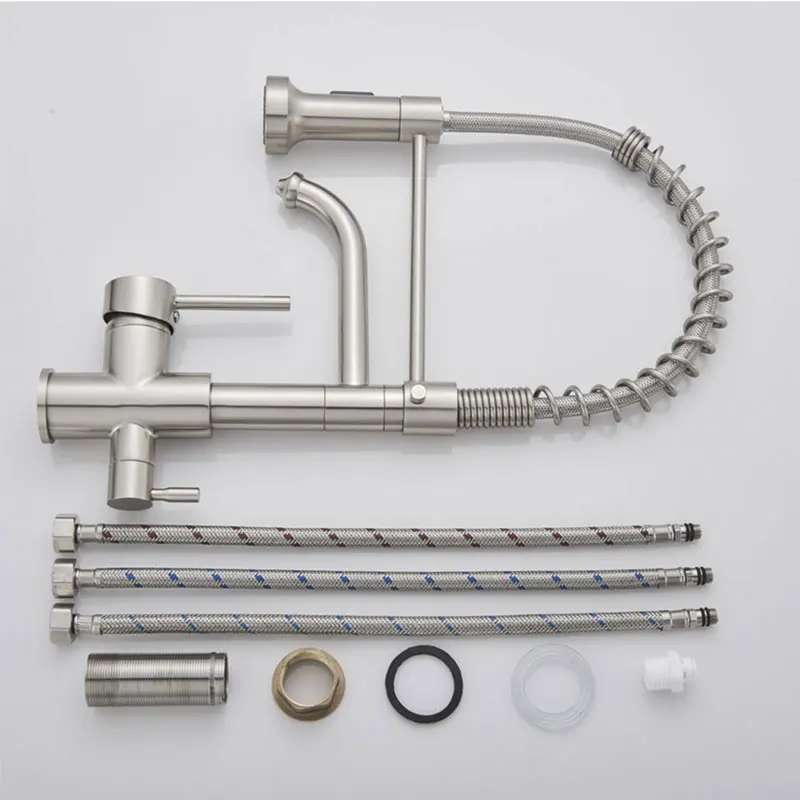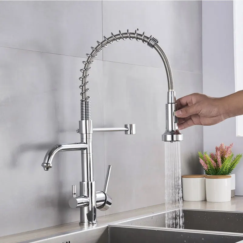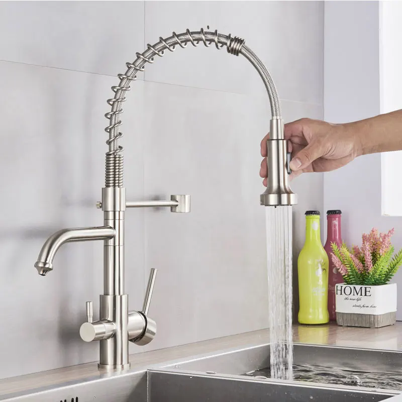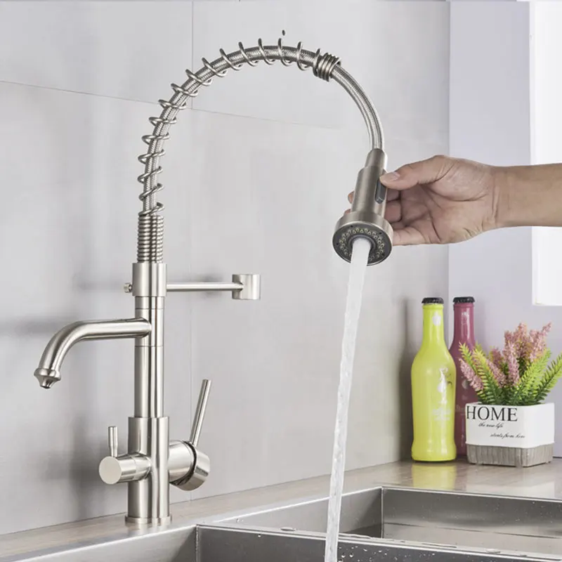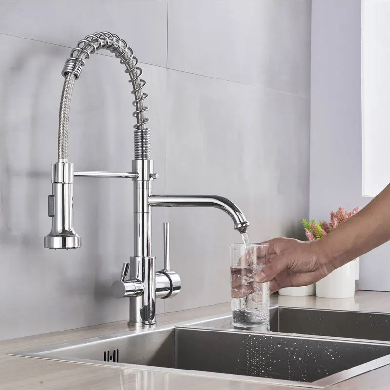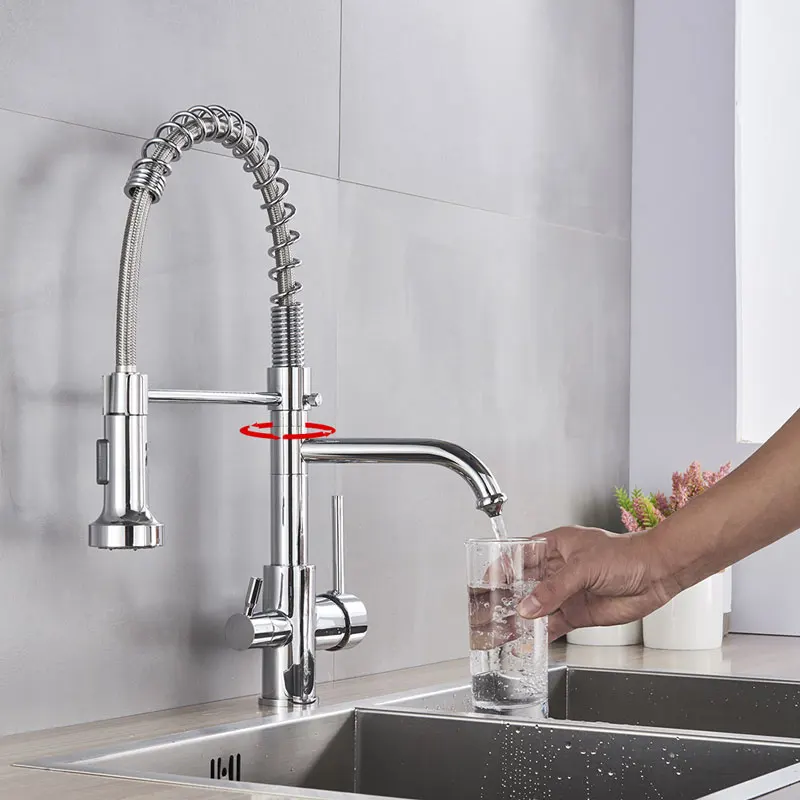 Nickel Chrome Kitchen Sink Faucet Purified Free Rotation Hot Cold Mixer Dual Handle Tap Deck Mount Spring Drink Faucets