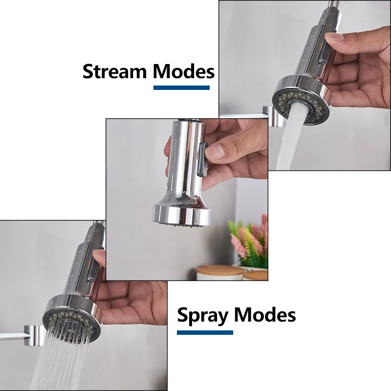 The 2-mode spout offers both a stream and spray option, allowing you to choose the water flow that best suits your needs. Whether you need a strong stream for rinsing or a gentle spray for washing delicate items, this faucet has you covered.