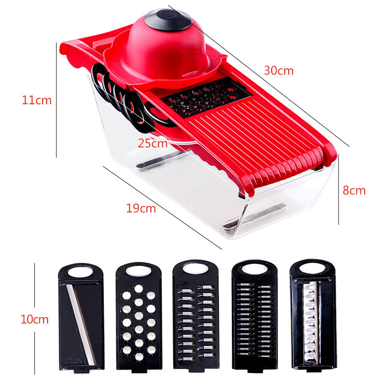 • Features 6 different types of stainless steel blades for variety of slicing & cutting.