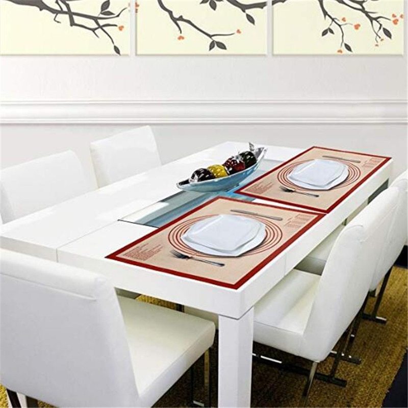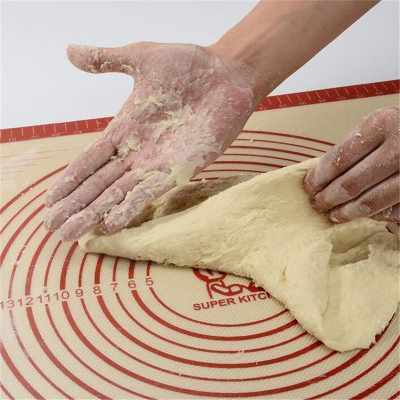 SUPER VERSATILITY MAT:1/ Non slip pastry mat .28 '' × 20'' and 0.7MM thickness .2/Table mat .0.7 MM thickness and easy to clean.3/ Baking mat .Resists temperatures from -30°F to 470°F )! 4/ Pizza mat