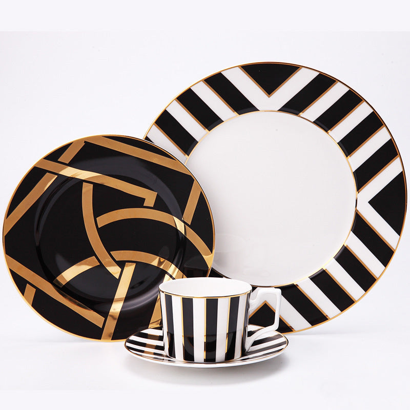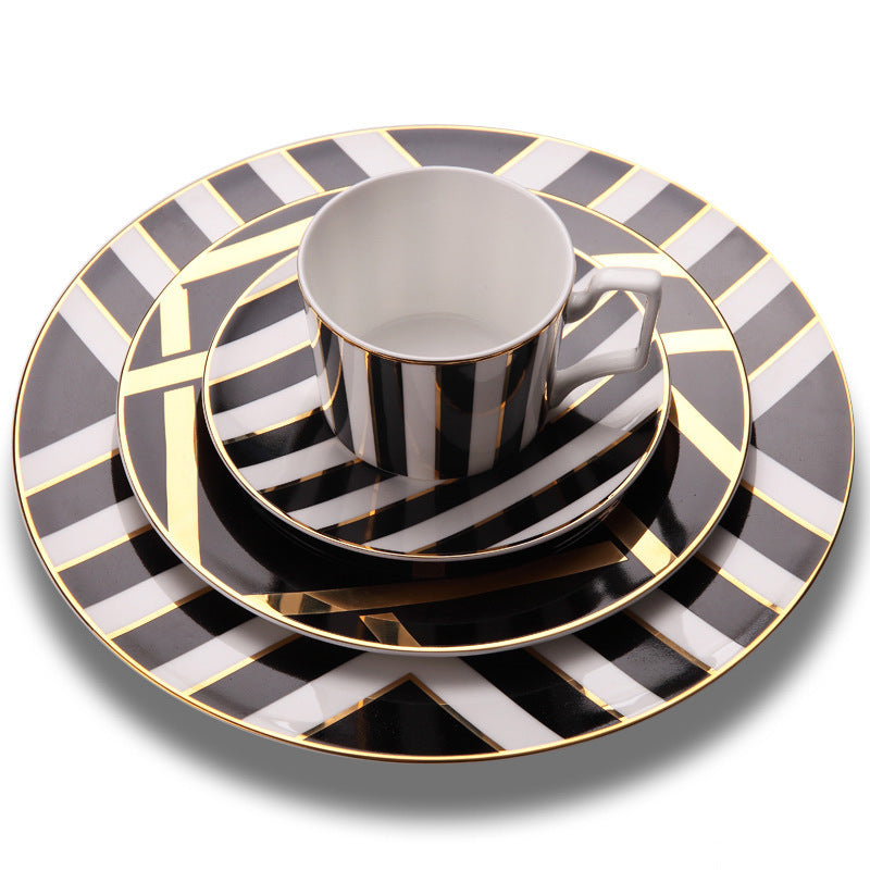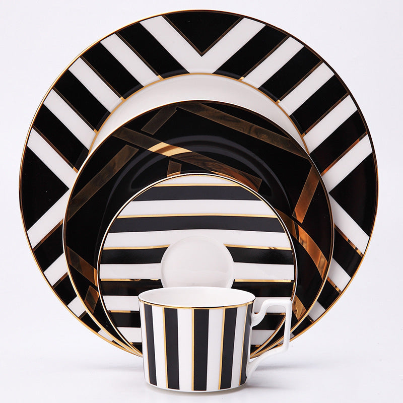 The Four-piece Striped Gold Series is an epitome of elegance and sophistication. The golden stroke combined with the black texture creates a captivating visual contrast, making each piece a true work of art. The luxurious golden hue adds a touch of opulence to your table, making it a statement piece that is sure to impress your guests.