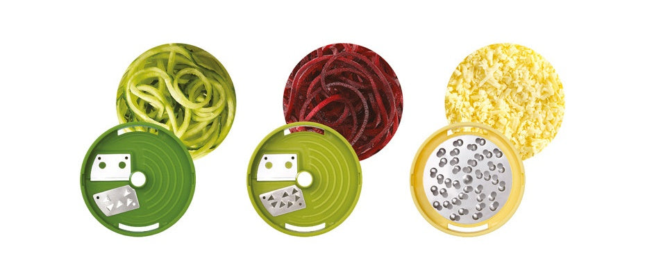 Easy to use, you can store the wiped shredded shreds while turning the cup; you can use this shredded shredded shredder to make a variety of vegetable shreds and fruit shreds with the same thickness; thick and thin blades that contain cheese or vegetables, and spiral shreds Blades; all blades can be stored in the cup to save space; the upper part of the dishwasher is washed.
