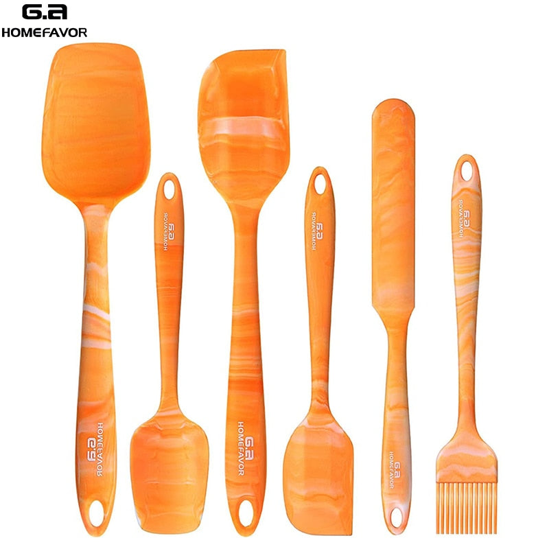 6 Pieces Kitchenware Spatula Sets Cooking Tools Scraper Spoon Brush Soft Silicone Baking Cooking Accessories Kitchen Utensils