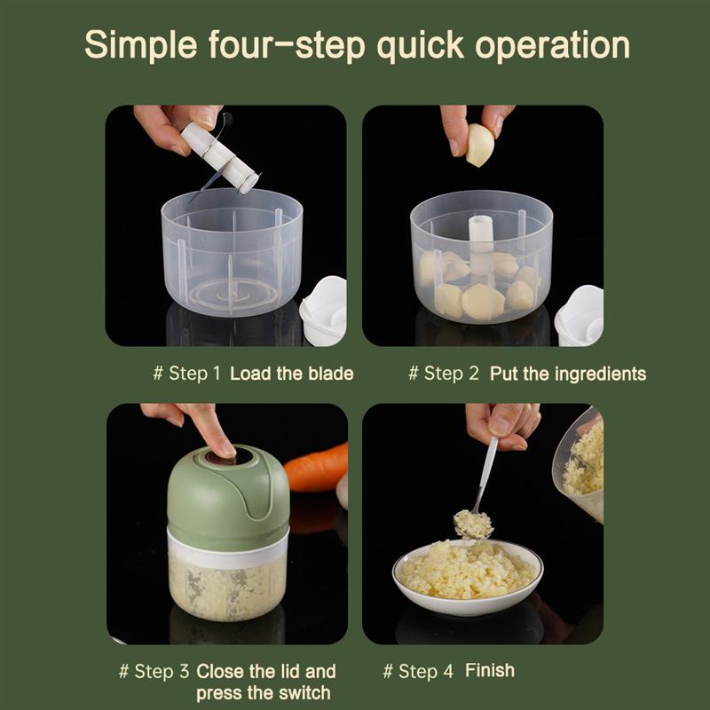 With a generous capacity of 250ml, this mini food chopper is perfect for small batches of garlic, chili, and other veggies. Whether you're preparing a quick meal for yourself or cooking for a small group, this garlic press will make your life so much easier. Its electric motor allows for fast and effortless mincing, saving you time and effort in the kitchen. Say goodbye to tedious manual chopping and hello to convenience and efficiency.