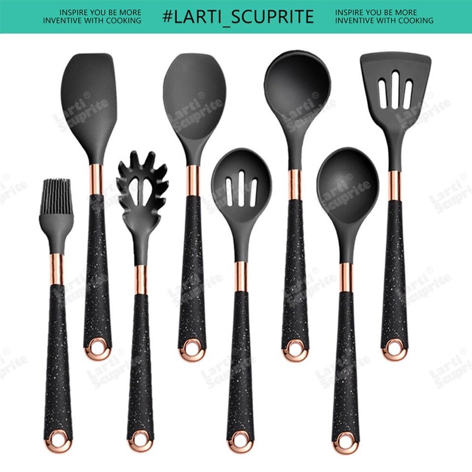 New Silicone Kitchenware Non-stick Kitchen Utensils Set Gold Plated Handle Cooking Tool Accessories Heat Resistant Kitchen Items
