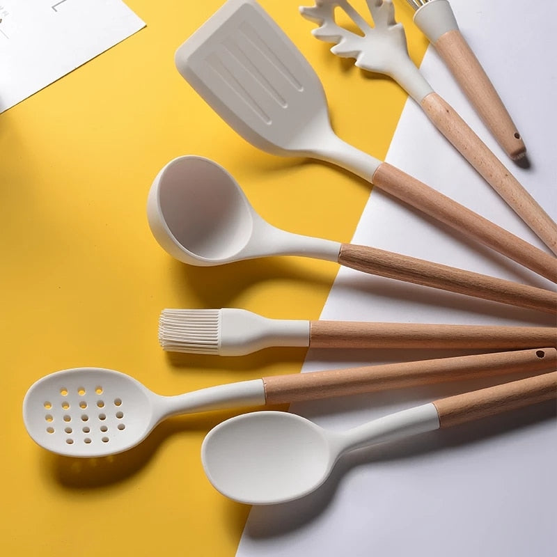 Looking for high-quality kitchenware that can help you cook like a pro? Look no further than our selection of silicone kitchenware with wooden handles! Our non-stick spatulas, heat-resistant cooking tools, ladles, egg beaters, and other cookware accessories are perfect for any home chef who wants to make delicious meals with ease. Made from durable, food-grade silicone, our kitchenware is safe to use with all types of cookware and won't scratch or damage your pots and pans. The wooden handles provide a comfortable grip and a stylish look that will complement any kitchen décor. Whether you're making breakfast, lunch, or dinner, our kitchenware will help you cook with precision and ease. From flipping pancakes to whisking eggs, our non-stick spatulas and egg beaters are the perfect tools for any home cook. So why wait? Upgrade your kitchen today with our selection of silicone kitchenware with wooden handles and start cooking like a pro! With our high-quality cookware accessories, you'll be able to make delicious meals that your family and friends will love.