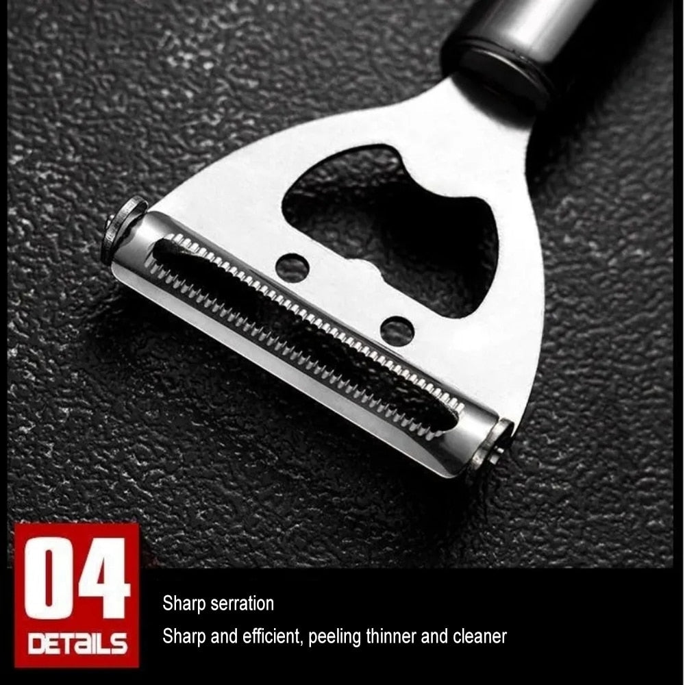 But that's not all – this multi-function peeler also comes with a corkscrew! Now you can easily open your favorite bottle of wine while preparing your meals. It's the perfect tool for wine enthusiasts who love to cook.