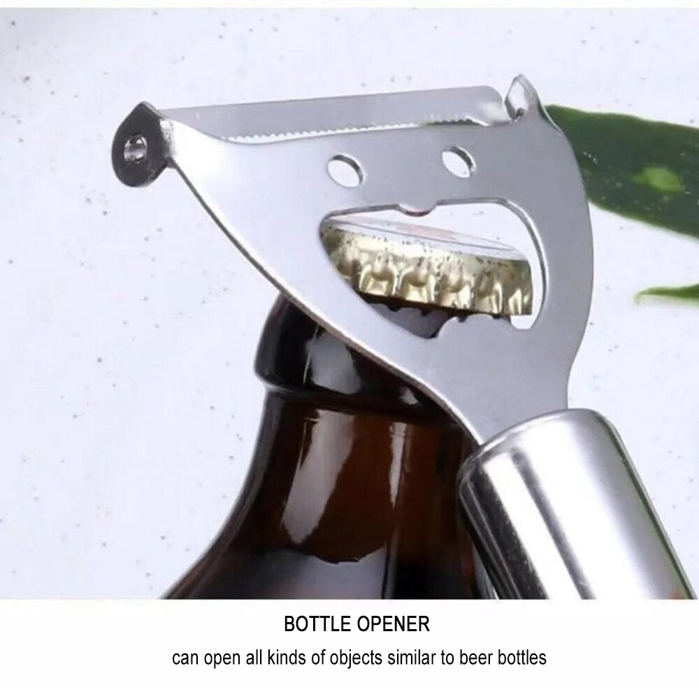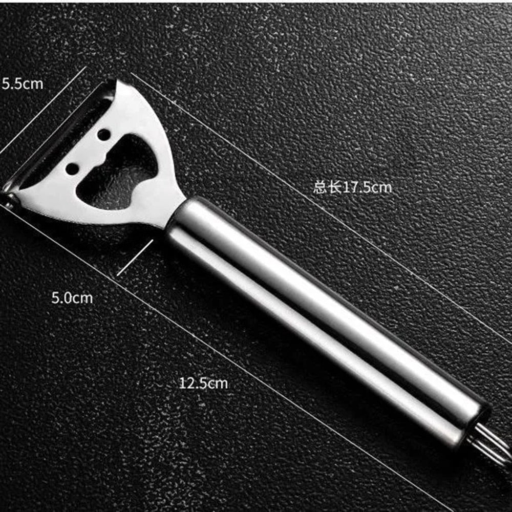 Introducing our Stainless Steel Multi-function Vegetable Peeler & Julienne Cutter! This versatile kitchen tool is perfect for peeling and julienning vegetables, as well as grating potatoes and carrots. Made from durable stainless steel, it features a comfortable grip handle for ease of use. Plus, it even comes with a corkscrew for opening your favorite bottle of wine! Whether you're a professional chef or a home cook, this multi-function peeler is a must-have tool in your kitchen. Don't settle for a regular peeler – upgrade to our Stainless Steel Multi-function Vegetable Peeler & Julienne Cutter today and experience the difference! Order now and take your cooking to the next level.