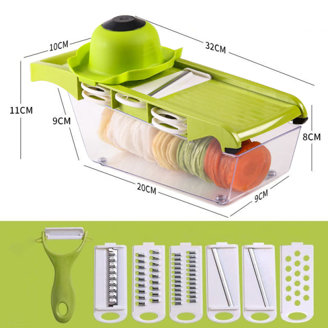Vegetable Cutter Fruit Slicer Shredders Carrot Grater Chopper 9 in 1 Gadgets Slicer Peeler Drain Basket Kitchen Accessories Tool