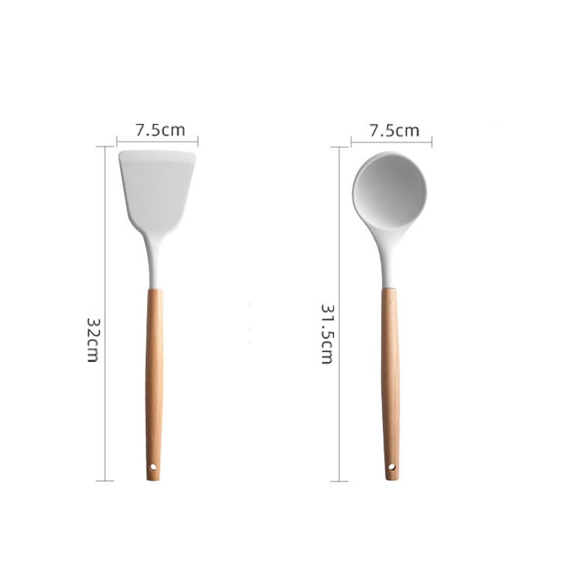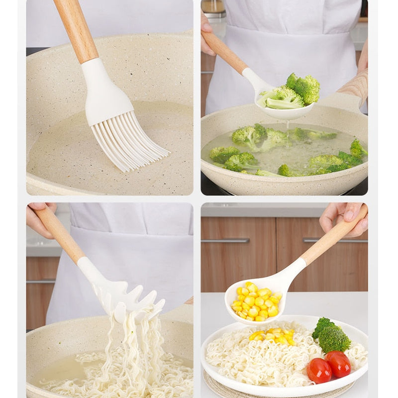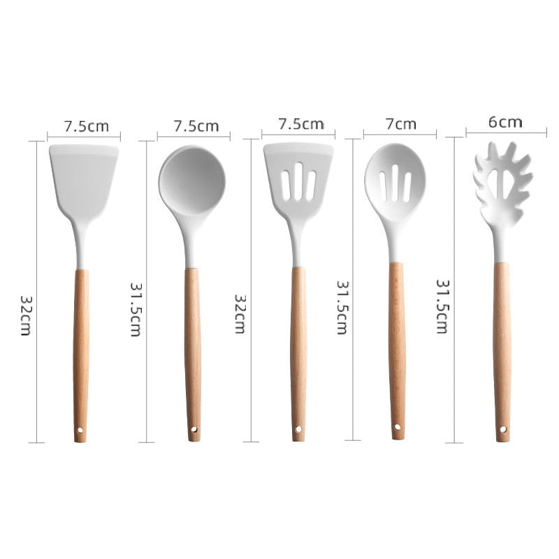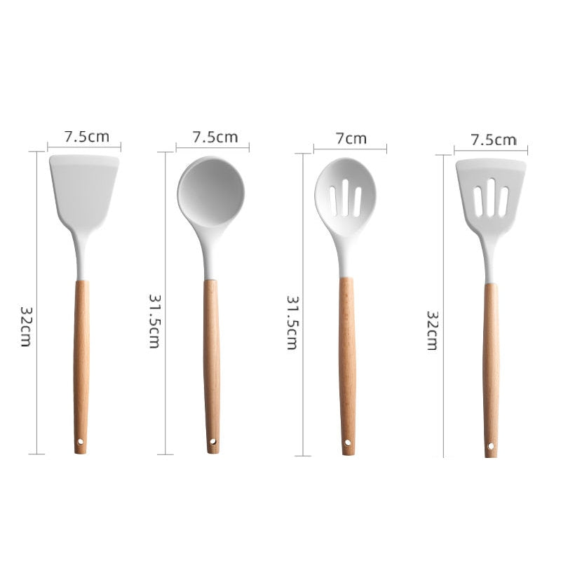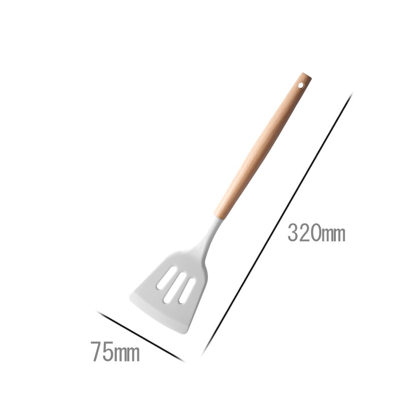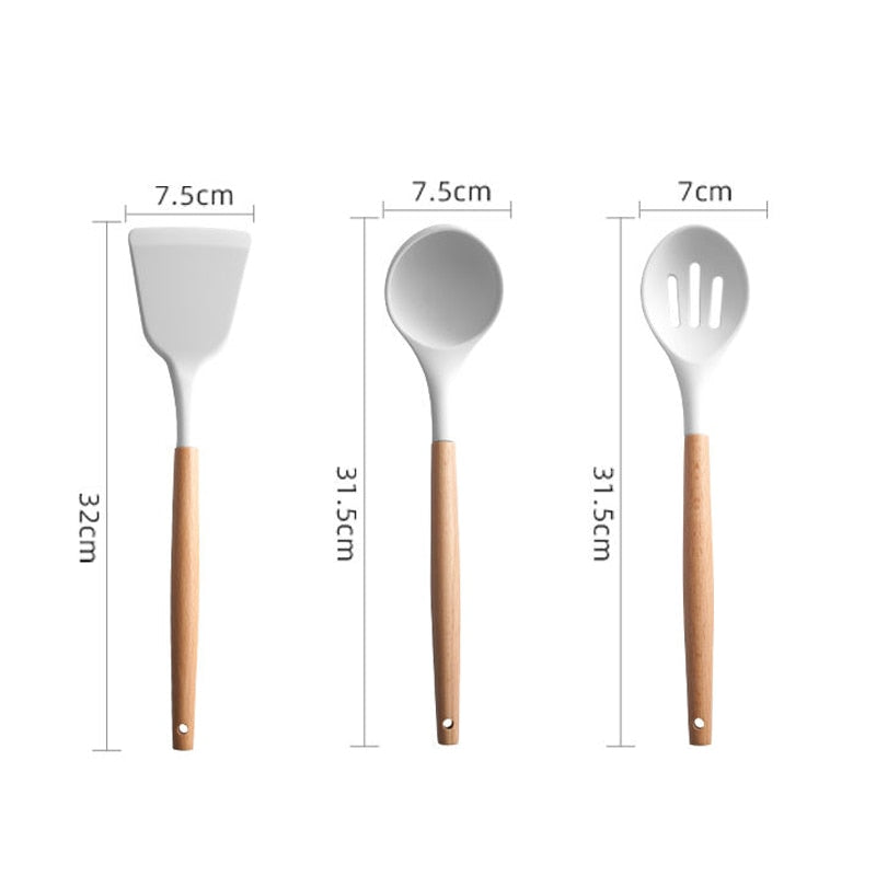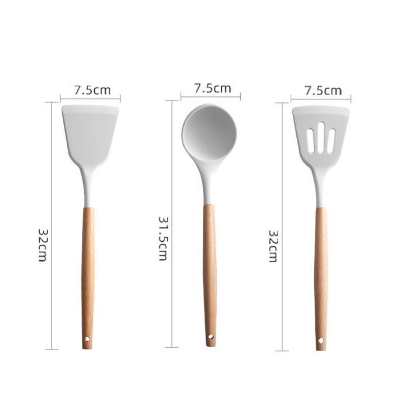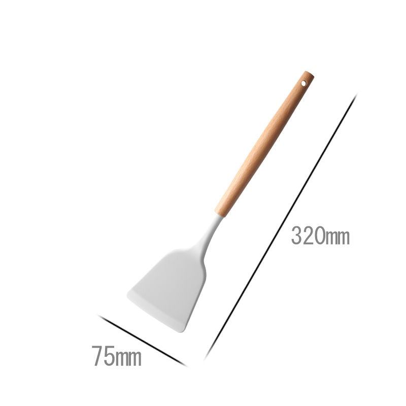 White Silicone Kitchenware Set Wooden Handle Non Stick Spatula Spatula Cooking Tools Shell Egg Beaters Pans