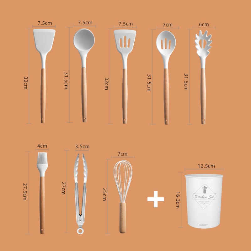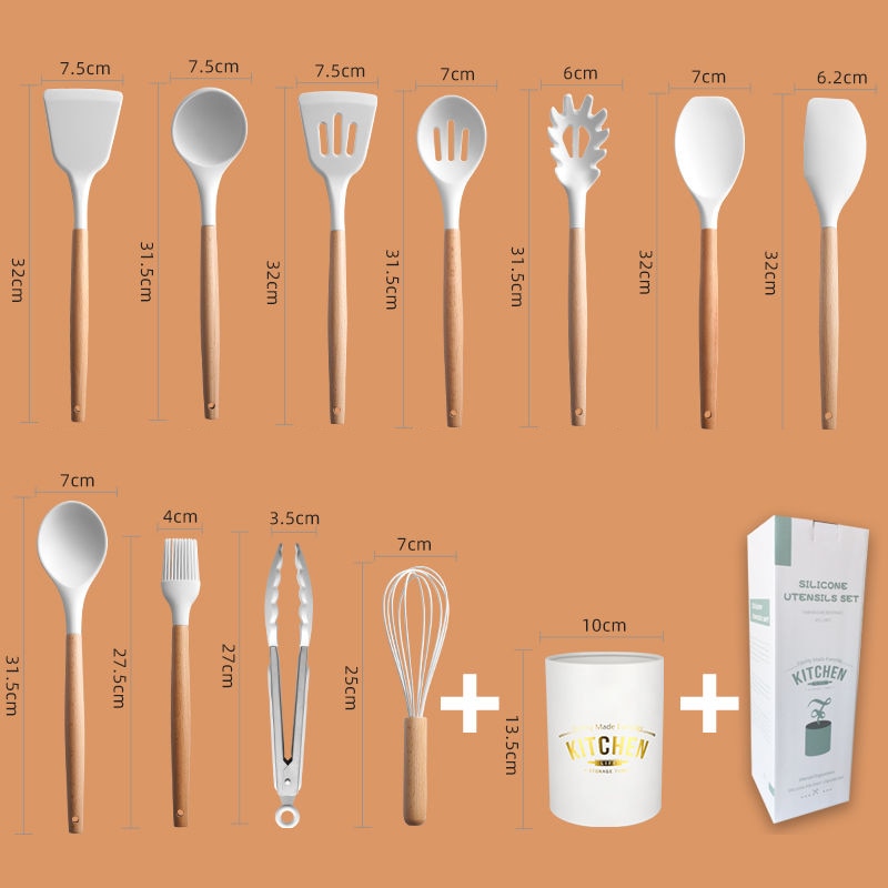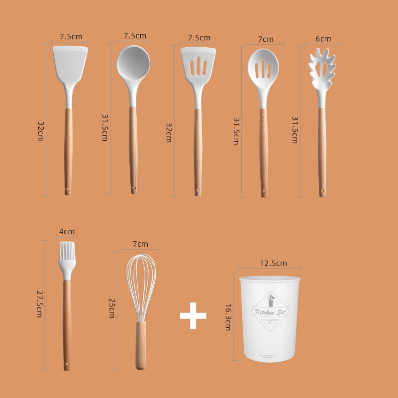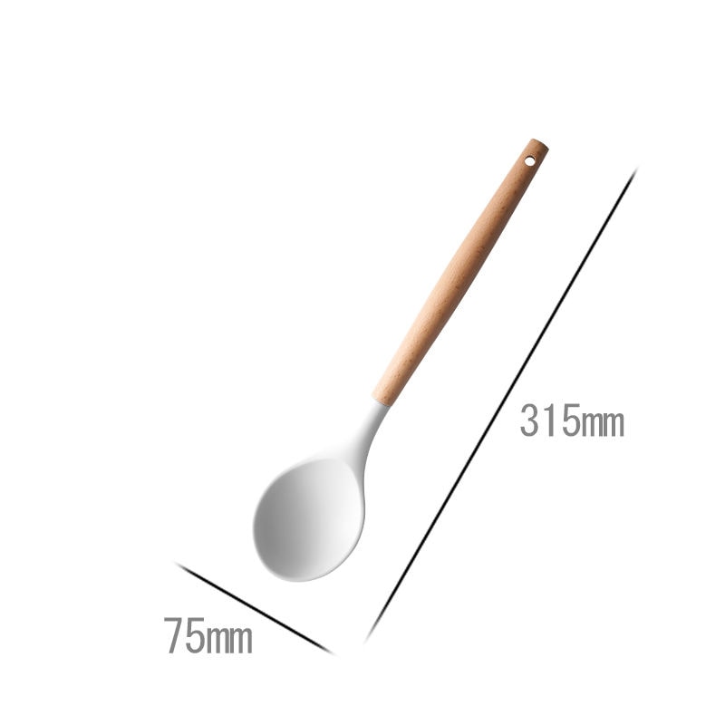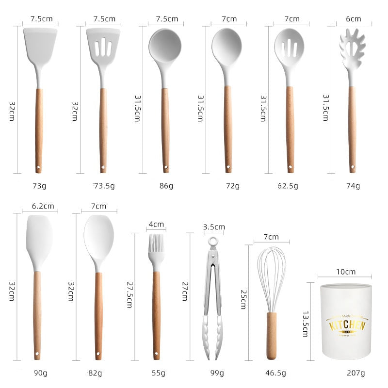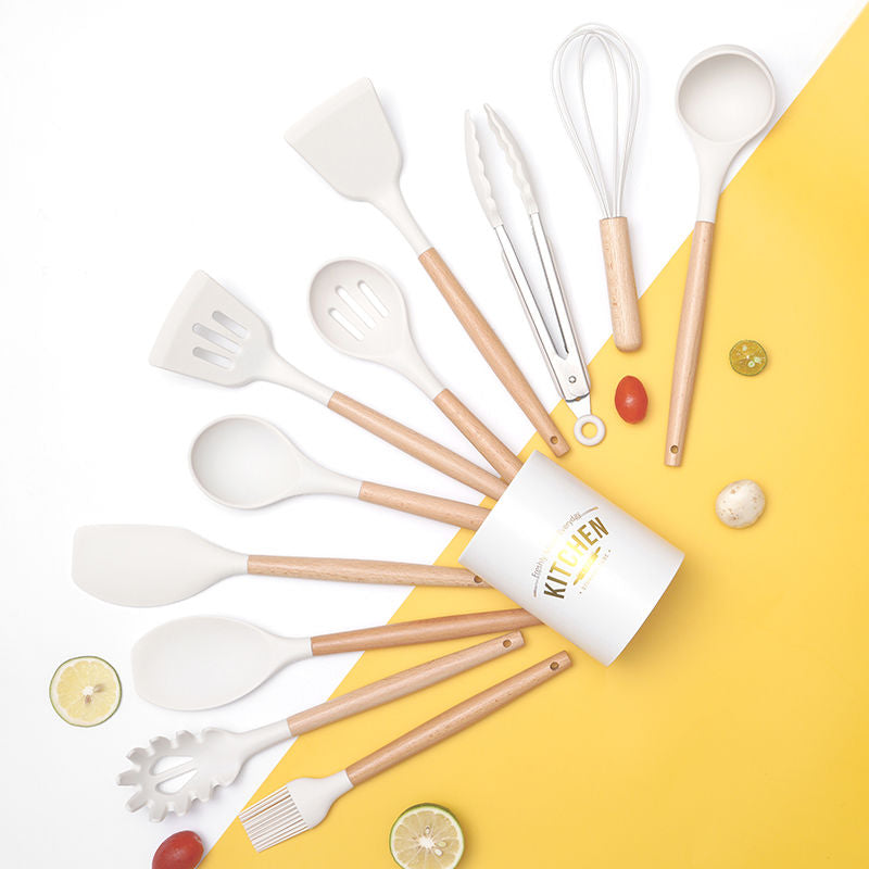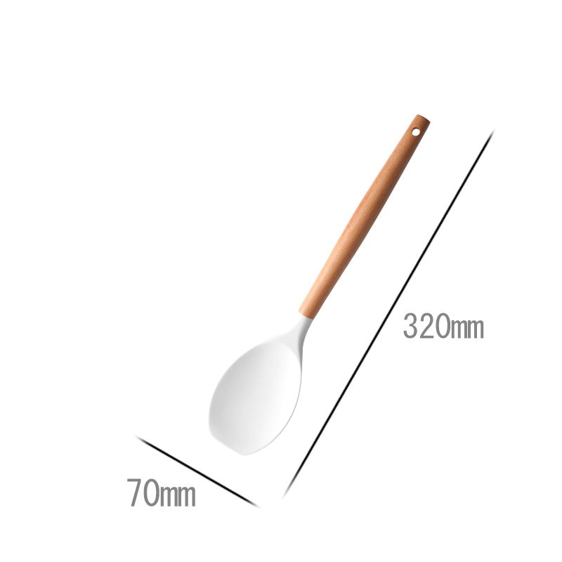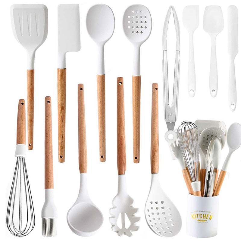 White Silicone Kitchenware Set Wooden Handle Non Stick Spatula Spatula Cooking Tools Shell Egg Beaters Pans